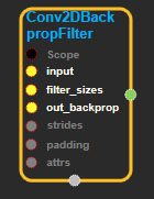 - Output output : Output object of Conv2DBackpropFilter class object.